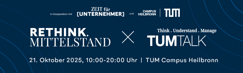 Rethink.Mittelstand & TUM TALK inkl. Get-together | 30. Oktober 2024 | AULA, Bildungscampus 6, Heilbronn