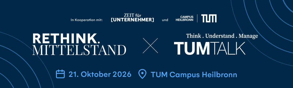 Dieses Event veranstaltet Studio ZX (Datenschutzhinweise der Studio ZX GmbH) mit dem Partner TUM Campus Heilbronn gGmbH (Datenschutzhinweise der TUM Campus Heilbronn gGmbH). Als Gegenleistung für die kostenlose Teilnahme darf der Partner Ihre E‑Mail‑Adresse zur werblichen Ansprache nutzen. Sie erhalten vom Partner Informationen und Angebote ausschließlich zum TUM Campus Heilbronn. Das Studio ZX übermittelt zu diesem Zweck Ihre E‑Mail‑Adresse an den Partner TUM Campus Heilbronn gGmbH.